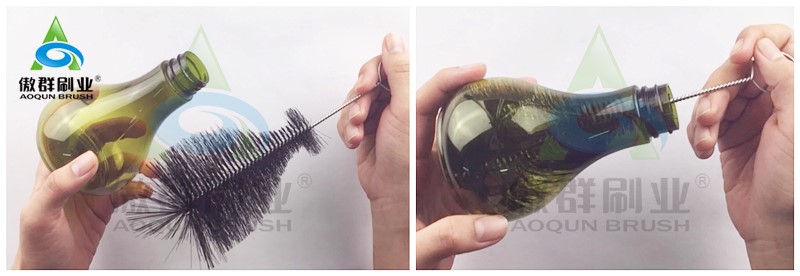 世界上有很多形形式式、各种不同大小、形状的酒瓶,那么,并不是每种酒瓶刷都是适用清洗特别的酒瓶,当你手上拿着的酒瓶是瓶口小,瓶身肥的葫芦型酒瓶时,若使用普通圆柱型的酒瓶刷,会发现毛刷怎么扭转来清洗都是无法将一些死角位置清洗干净。