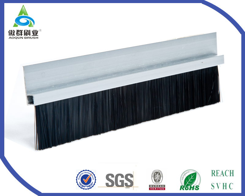 门底密封毛刷应用广泛,是由底座、紧固线和毛料组成的,配上支架(即铝合金基座)使用。适用于各种工业门、快速卷帘门、快速堆积门、旋转门、肯德基门、家庭木门等。安装时可以把密封条暗装于门边的铝合金型材内。具有防尘、防虫,防止空调冷气流失、防水、隔冷热、隔音等功能。