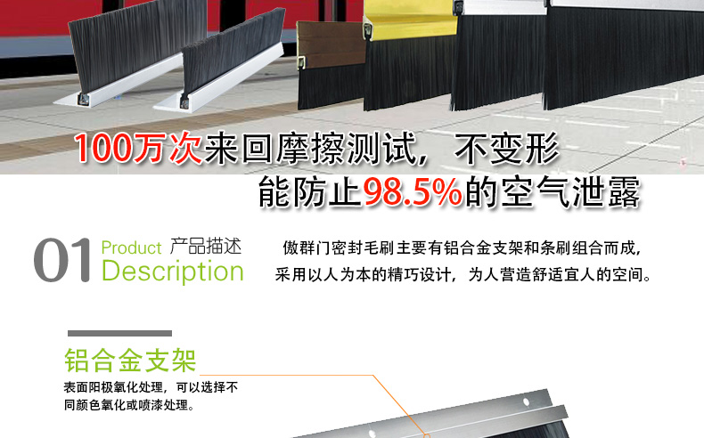 产品简介: 家用门密封门刷已经开始逐渐进入到平常百姓家的门上了,给家用的木制门、推拉门、推开门的门缝上安装密封门刷,能有效地起到密封、防尘、防虫、隔冷热等作用,给家庭营造出一个安全、环保、舒适的生活环境!详情咨询 傲群石小姐 13580380003