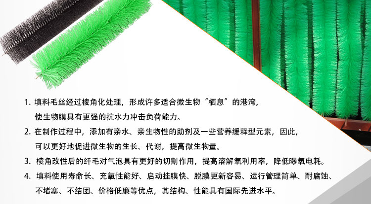 过滤毛刷是沿螺旋径向自然分布在耐腐蚀高强度的不锈钢骨架上,经过绕制而成的重心为正圆柱形对称的毛刷。使得毛丝之间具有良好的疏水性能,可较大面积吸附水中悬浮物并催生消硝化菌的生长,吞食有害细菌从而达到生物和物理过滤的效果!